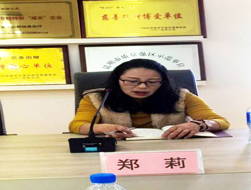 云南巨力集團黨總支紀檢委員、集團工會主席鄭莉發言。