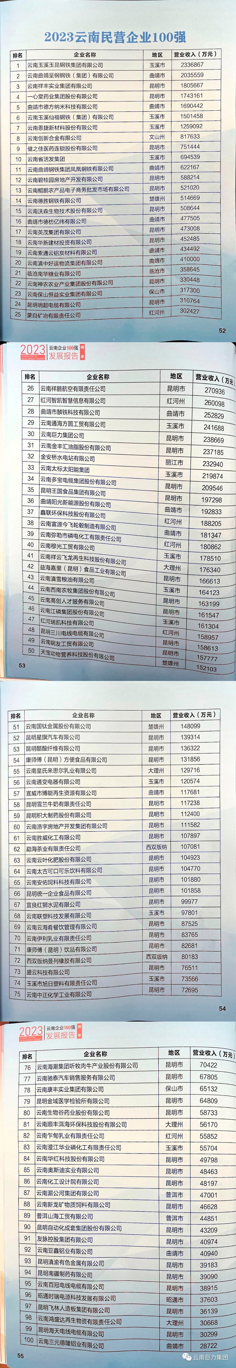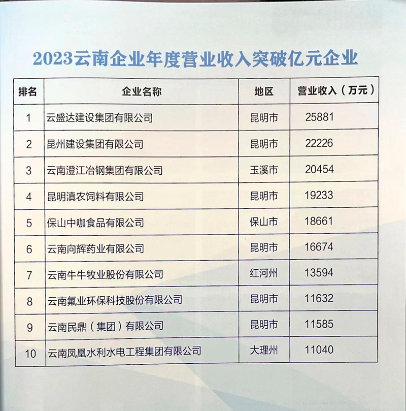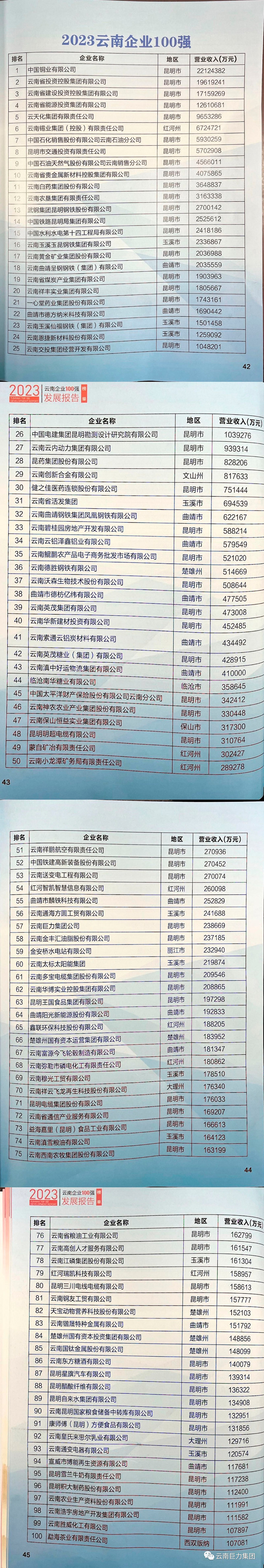 “2023云南企業100強”完整榜單——