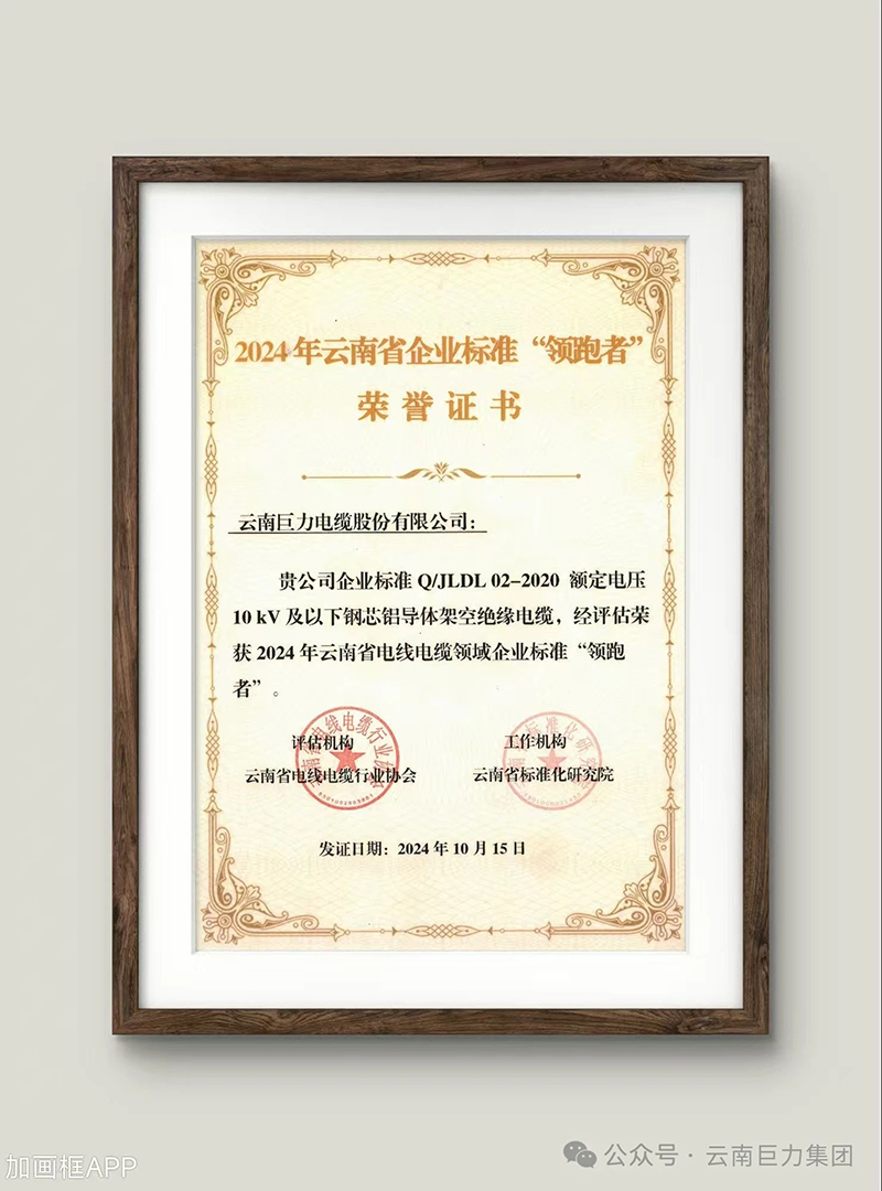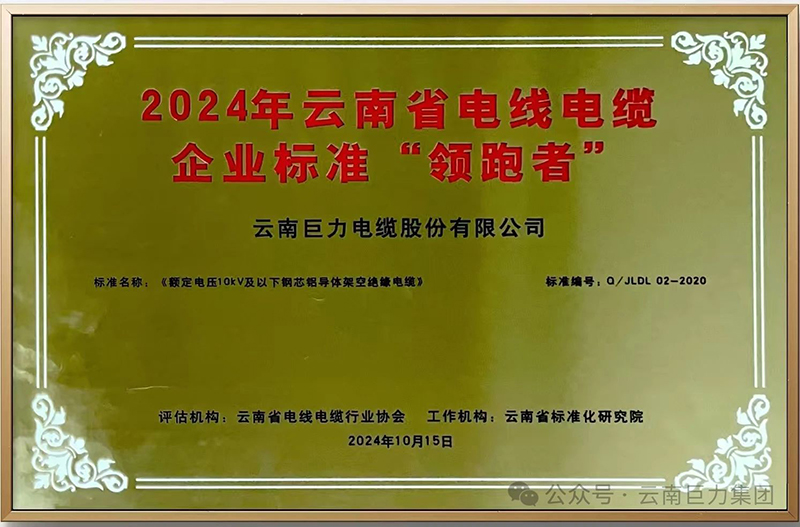 2024年被評為云南省電線電纜領域企業標準“領跑者”。