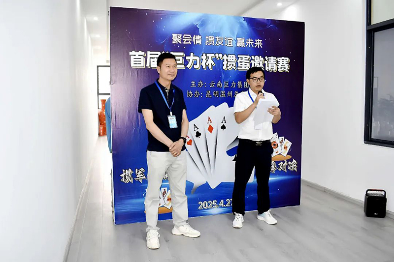 4 月 27 日,由云南巨力集團主辦,昆明溫州總商會協辦的首屆“巨力杯” 摜蛋邀請賽在云南巨力集團圓滿收官。來自昆明溫州總商會和云南省溫州商會的32 位商界精英齊聚一堂,以牌為媒介,在牌桌上展開一場別開生面的智慧與協作盛宴,共同奏響 “聚商情、摜友誼、贏未來” 的動人樂章。