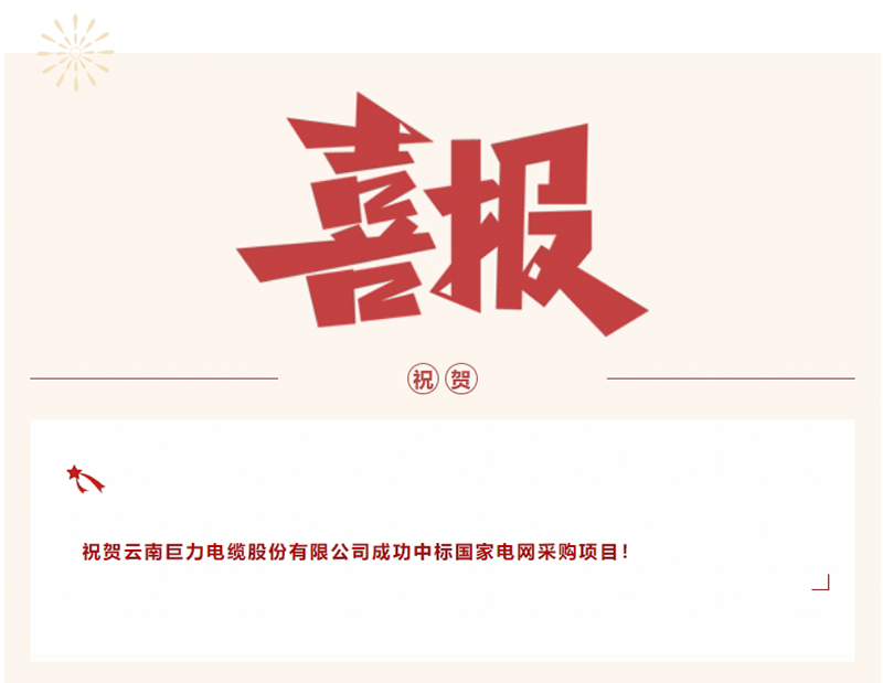 喜訊:云南巨力電纜中標國家電網公司采購項目!