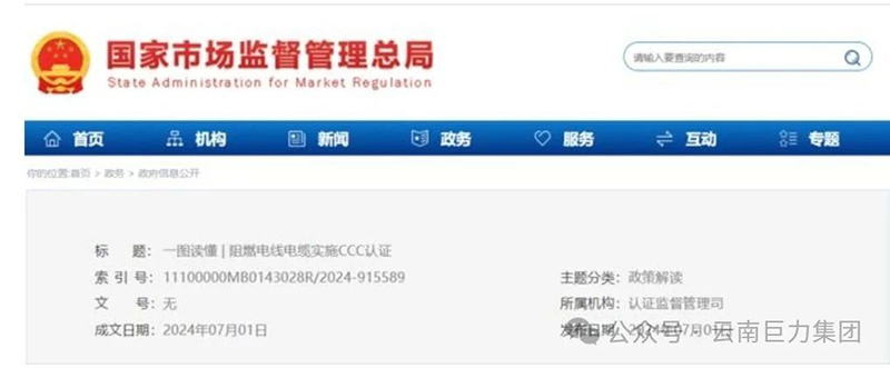 喜訊:云南巨力電纜股份有限公司成功獲得阻燃電線電纜國家強制性CCC產品認證!