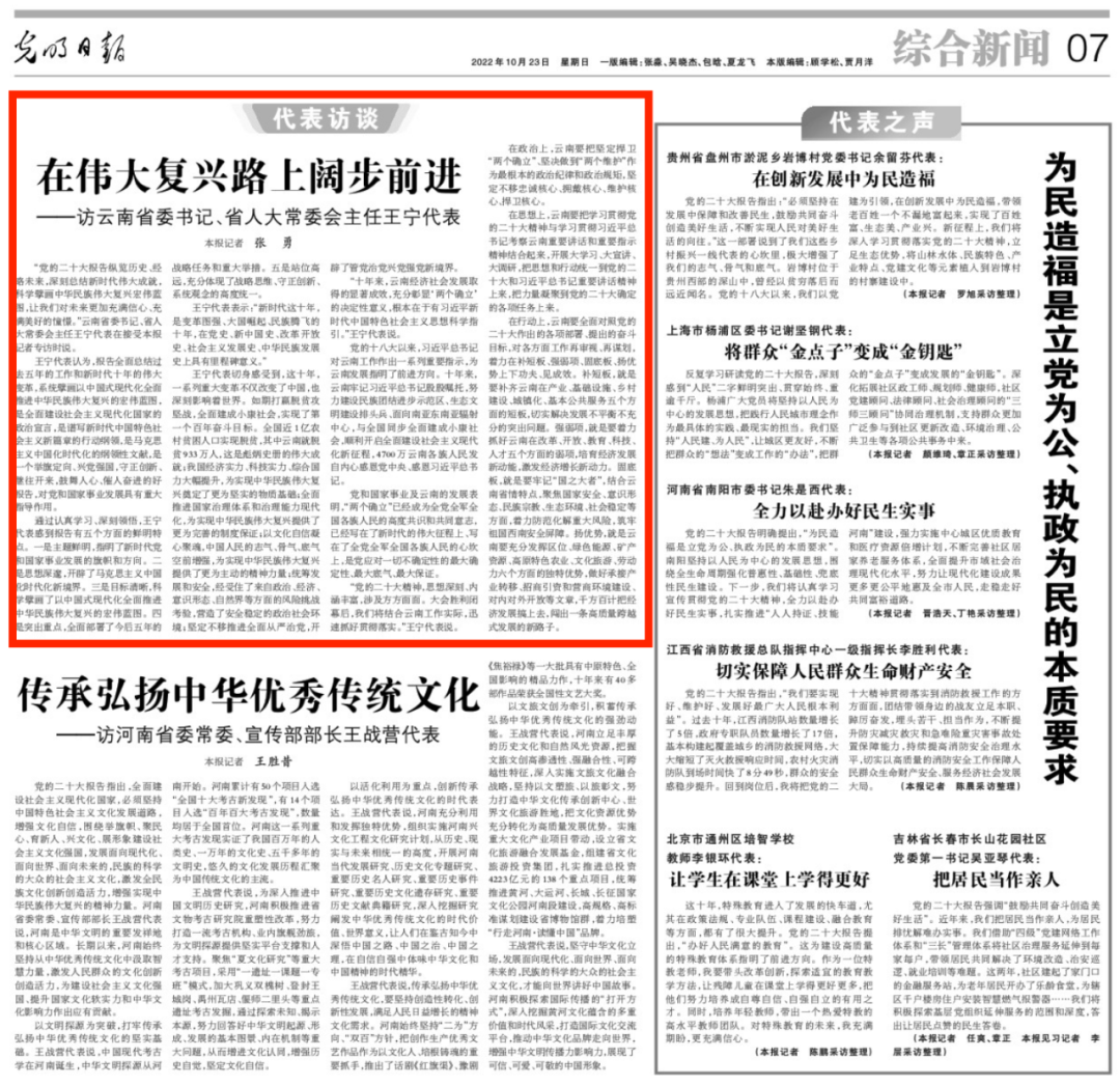 在偉大復興路上闊步前進!《光明日報》專訪云南省委書記、省人大常委會主任王寧